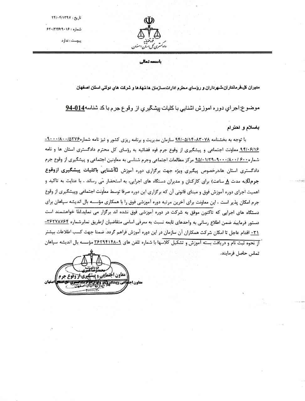اجرای دوره آموزشی «آشنایی با کلیات پیشگیری از وقوع جرم»